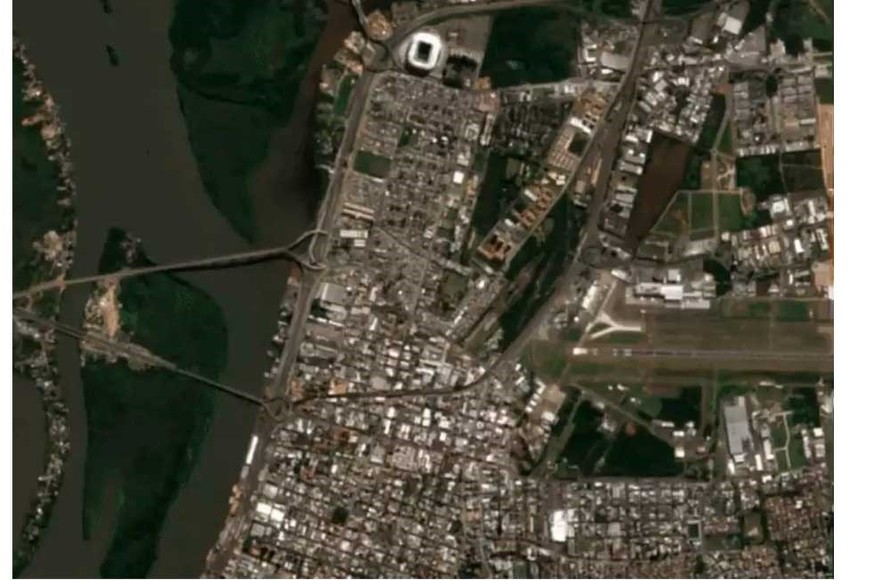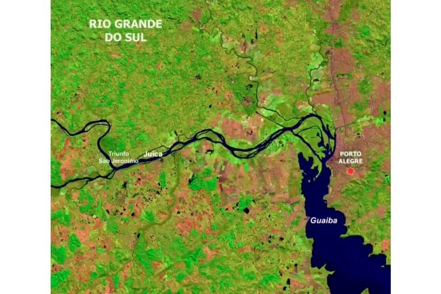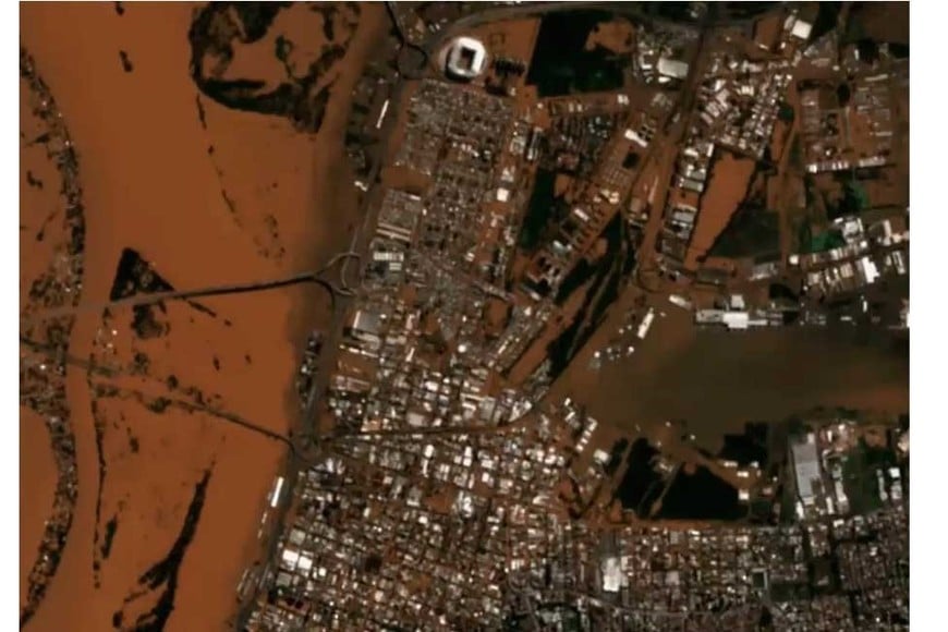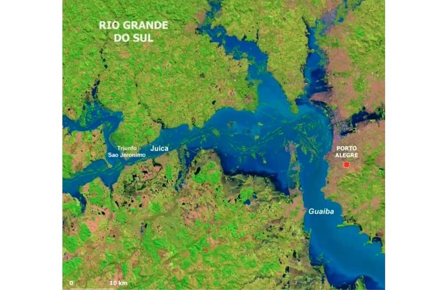 Y agregan: "Las distintas imágenes muestran que la inundación cambió el mapa de la región metropolitana. La magnitud de la crecida del río Jacuí puede calificarse de absurda, tal es la magnitud que asumió el curso de agua cuando llegó al delta, cerca de las ciudades de Porto Alegre, Eldorado do Sul y Guaíba".