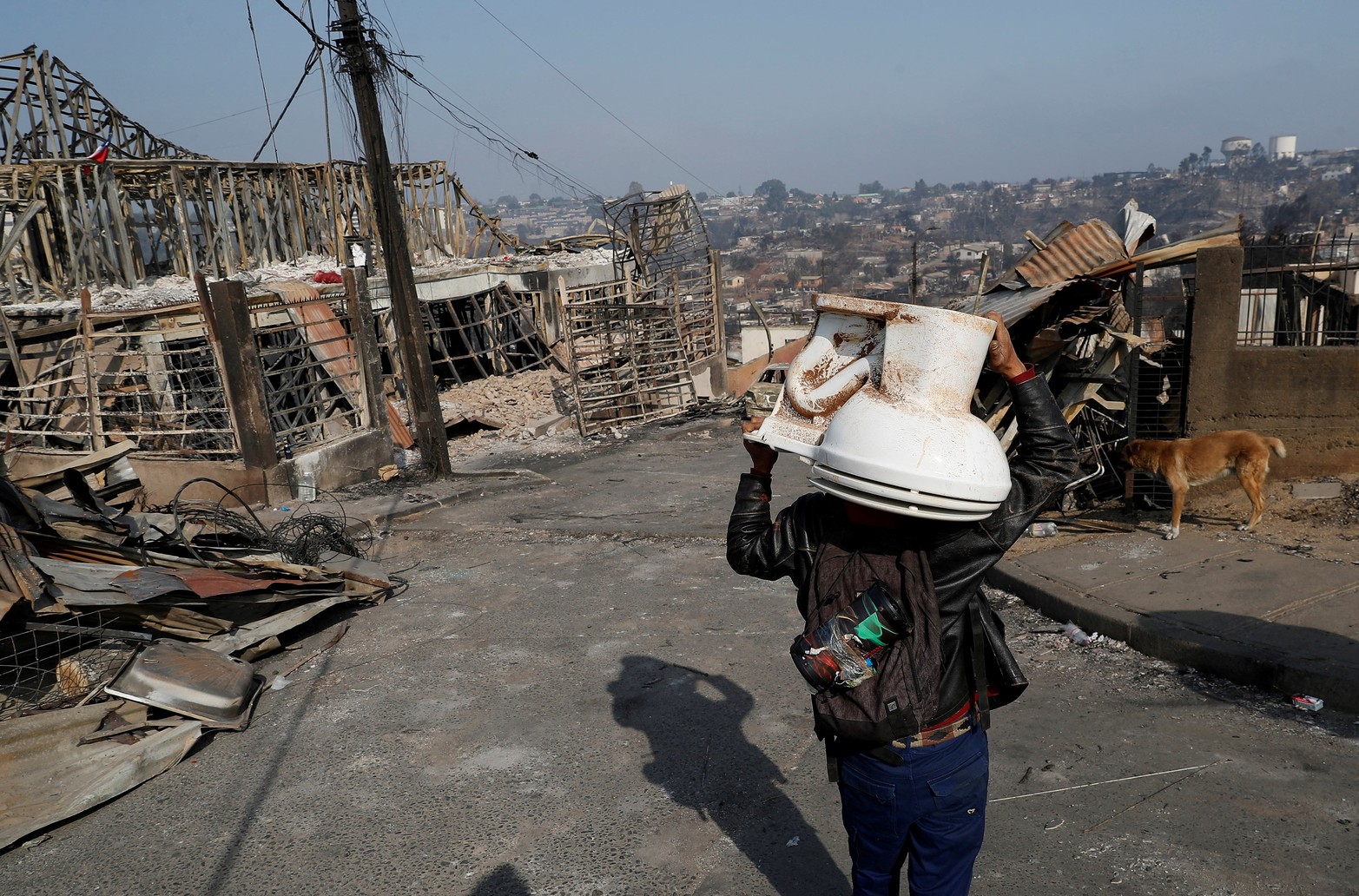 6 / 14 Juan Vásquez retira restos de su casa tras la propagación de incendios forestales en Viña del Mar expresa el pie de foto de la agencia internacional. Foto: Rodrigo Garrido Reuters