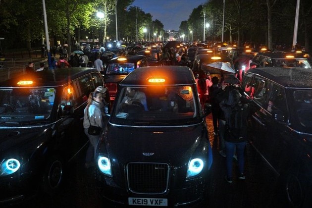 Por la noche ya había un mar de personas fuera del Palacio de Buckingham mientras los miles desafiaban la fuerte lluvia para presentar sus respetos.