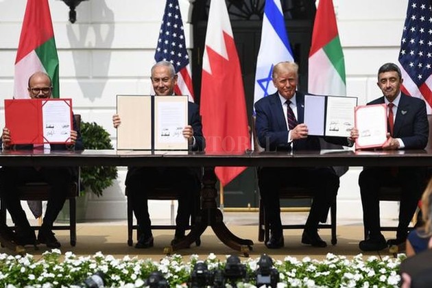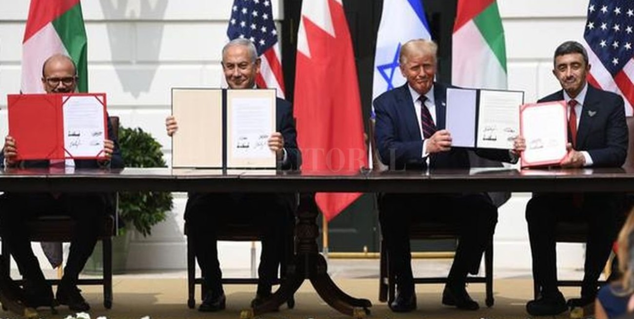 "Estamos aquí esta tarde para cambiar el rumbo de la historia", afirmó el presidente estadounidense Donald Trump al dar inicio a la la ceremonia de firma de los Acuerdos de Abraham, en la Casa Blanca. El primer ministro israelí, Benjamin Netanyahu, firmó los acuerdos alcanzados para normalizar relaciones con Emiratos Árabes Unidos y Baréin, bajo el auspicio del presidente estadounidense. Los acuerdos, en árabe, inglés y hebreo, fueron firmados también por los ministros de Exteriores de sendos países, Abdulá bin Zayed al Nahyan y Abdulatif bin Rashid al Zayani, respectivamente.
