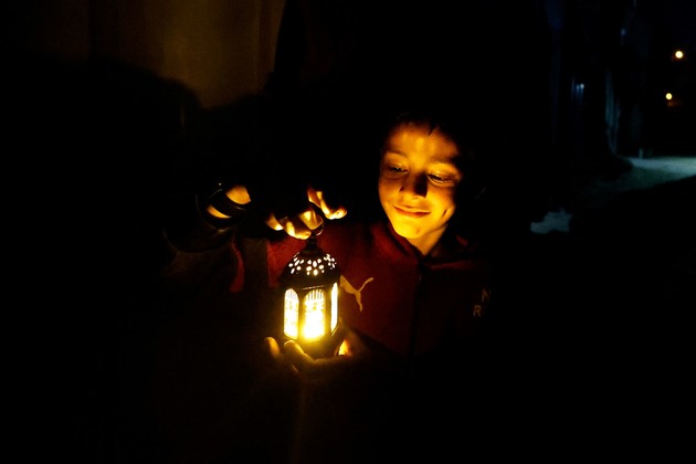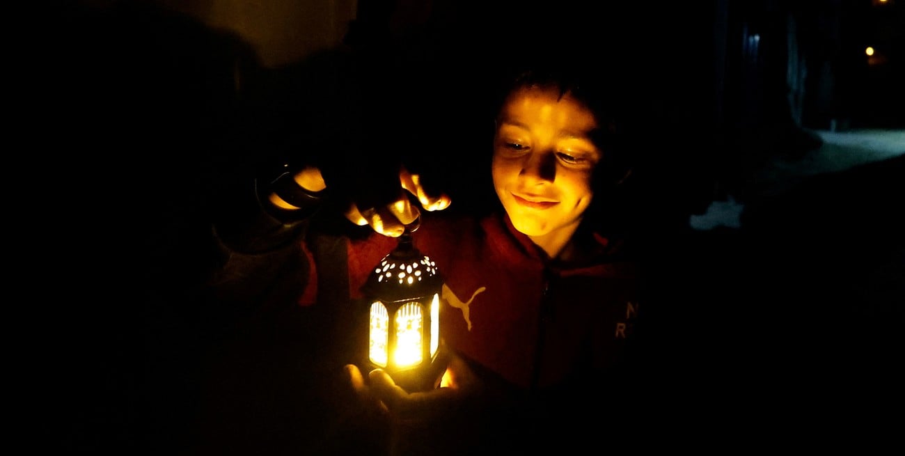 Un niño sostiene un farol mientras palestinos desplazados preparan sus tiendas para el Ramadán, en medio del actual conflicto entre Israel y el grupo islamista palestino Hamás, en Rafah, en el sur de la Franja de Gaza. Foto: REUTERS/Mohammed Salem