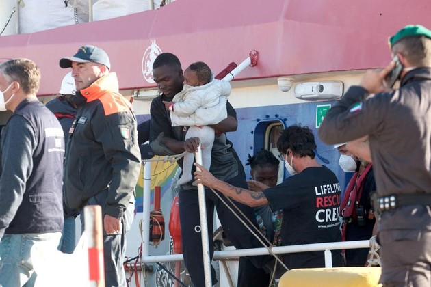 Después de semanas en el mar, el navío con bandera alemana "Humanity 1", de SOS Humanity, recibió autorización para atracar en Catania y desembarcar a 144 personas, esencialmente mujeres y menores, pero no a otros 35 hombres adultos.