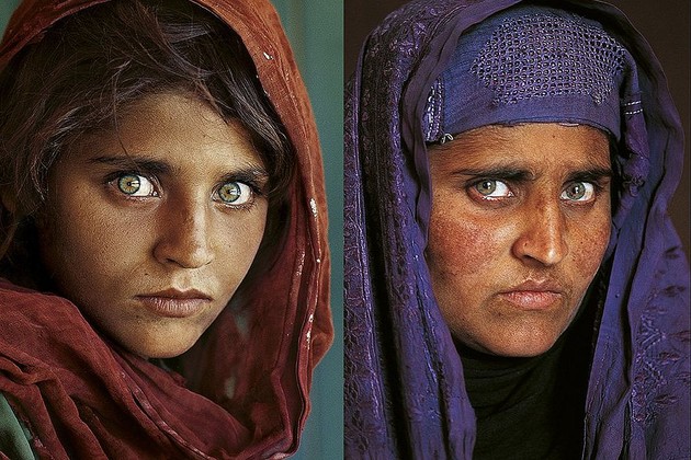 Sus sorprendentes ojos verdes, que destacaban en una cara enmarcada por un pañuelo en la cabeza con una mezcla de ferocidad y dolor, la hicieron célebre a nivel internacional, pero su identidad solo se descubrió en 2002, cuando McCurry regresó a la región y la localizó.