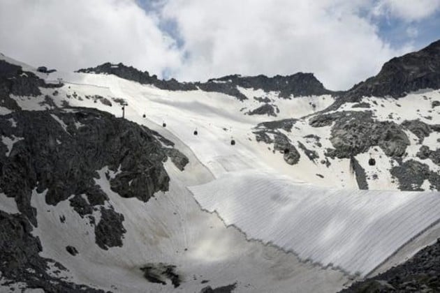 Los expertos dicen que el 70% de la nieve puede salvarse durante el verano con la cubierta protectora, que funciona de la misma manera que un protector reflectante plateado colocado en la ventana de un coche para evitar el sobrecalentamiento.