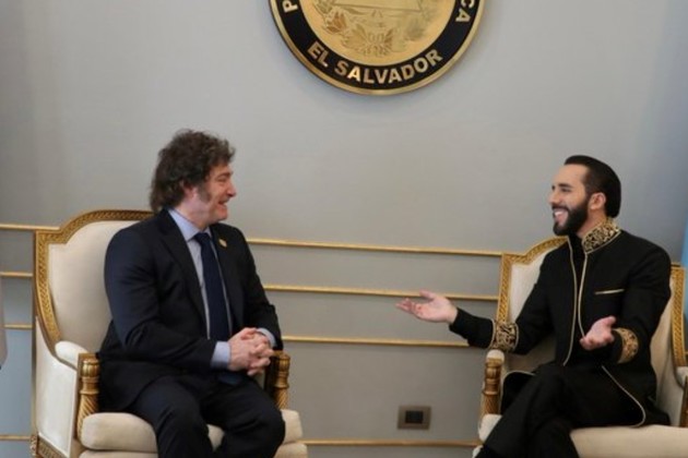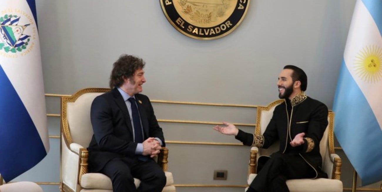 El acto contó con la participación de Javier Milei, presidente de la Nación Argentina, quien hizo escala en el país centroamericano luego de su gira por Estados Unidos en la que participó de numerosas cumbres con líderes y CEOs de empresas tecnológicas. Acompañado por su hermana y secretaria general de la Presidencia, Karina Milei, el Presidente saludó afectuosamente a su par salvadoreño.