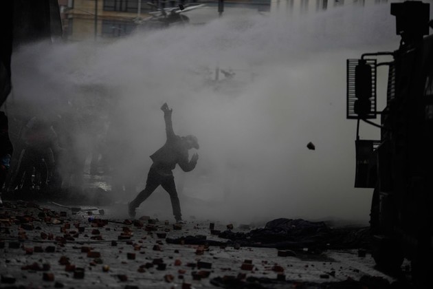 Este viernes, en la céntrica Plaza Bolívar de Bogotá, se desató una batalla campal cuando la policía disparó granadas de gas lacrimógeno contra manifestantes, muchos de ellos estudiantes, que iniciaban un cacerolazo de protesta contra el gobierno.
