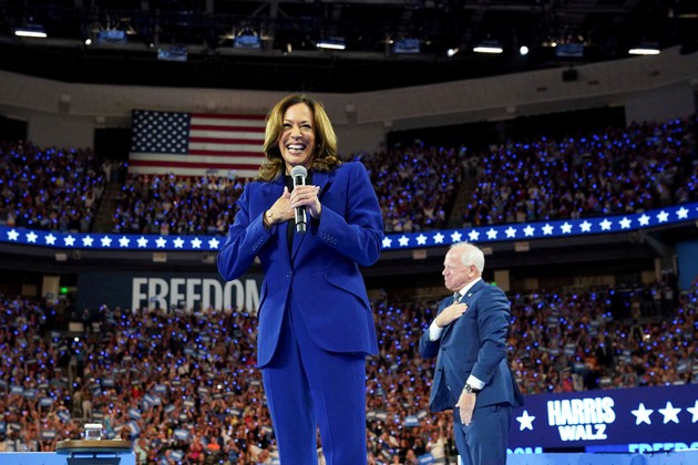 Kamala Harris junto a Tim Walz, gobernador de Minnesota y candidato a vice. Crédito: Marco Bello/Reuters
