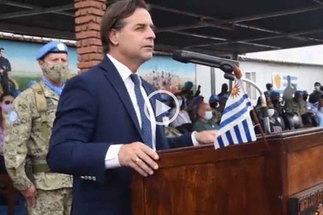 "Es un profundo honor estar participando en estas Fiestas con nuestro personal destacado en la República del Congo", afirmó Lacalle Pou en su discurso ante el Batallón "Uruguay IV".