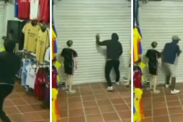 Dos delincuentes entraron a robar a una tienda de ropa deportiva en Colombia y quedaron encerrados dentro del local.