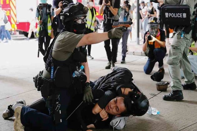 La policía dispersó con un cañón de agua a grupos de manifestantes reunidos, a pesar de estar prohibido, para demandar el respeto de la autonomía de Hong Kong, en el aniversario de la devolución de la antigua colonia británica a China en 1997. Algunos lanzaron consignas a favor de la independencia de Hong Kong.