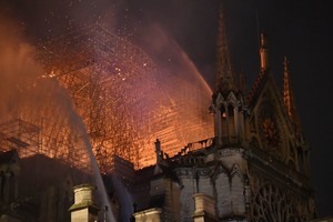 La aguja central del emblemático monumento se derrumbó consumida por las llamas.