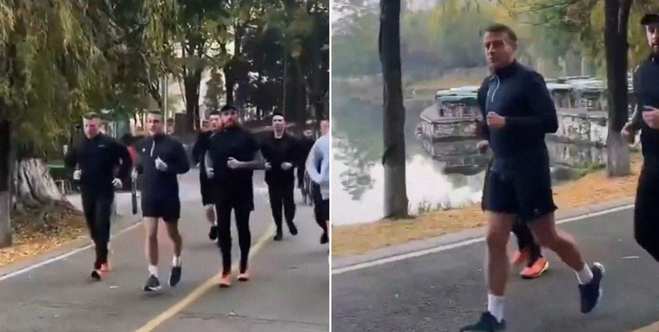 Macron salió a trotar escoltado en plena visita a China.Macron salió a trotar escoltado en plena visita a China.