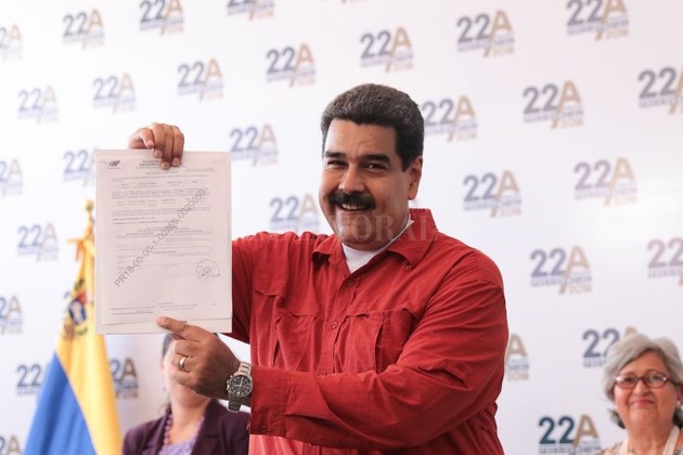 El mandatario venezolano Nicolás Maduro oficializó este martes la inscripción de su candidatura ante el Consejo Nacional Electoral (CNE) para buscar la reelección en el periodo 2019-2025 en los comicios pautados para el 22 de abril y ante la negativa a participar en el proceso de la oposición.