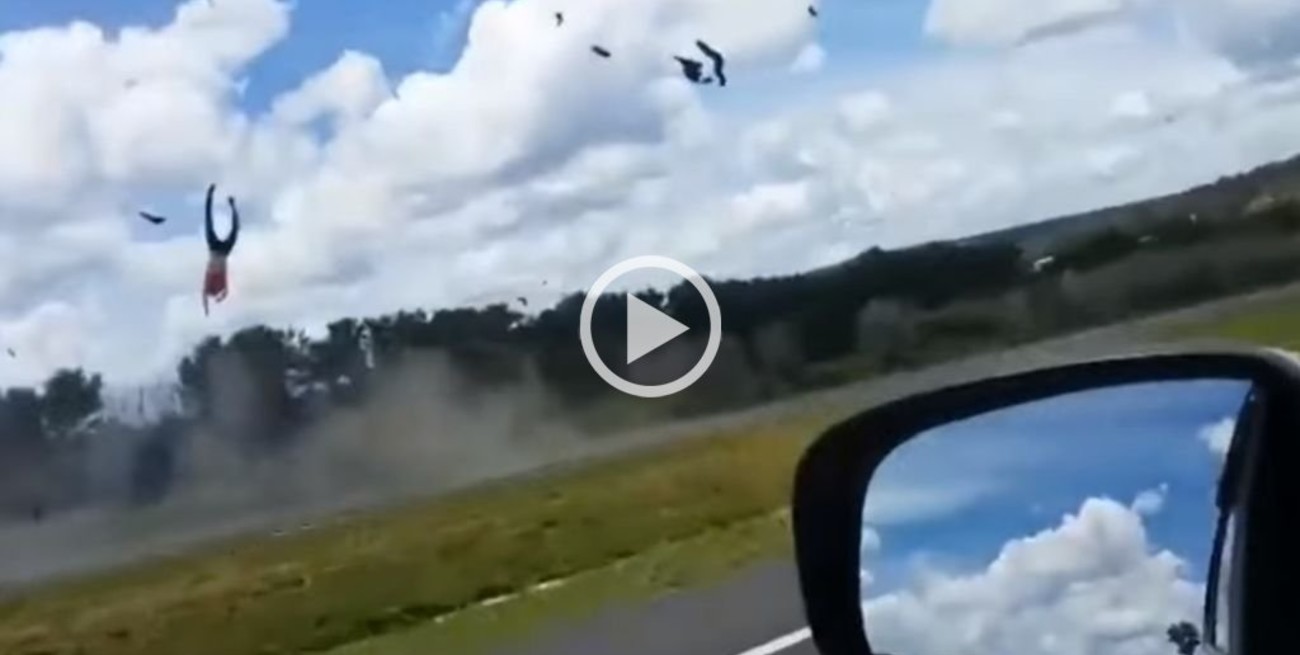 Unos segundo más tarde, el motociclista impactó de frente contra un automóvil, voló por los aires y cayó en el asfalto, muriendo en el acto.