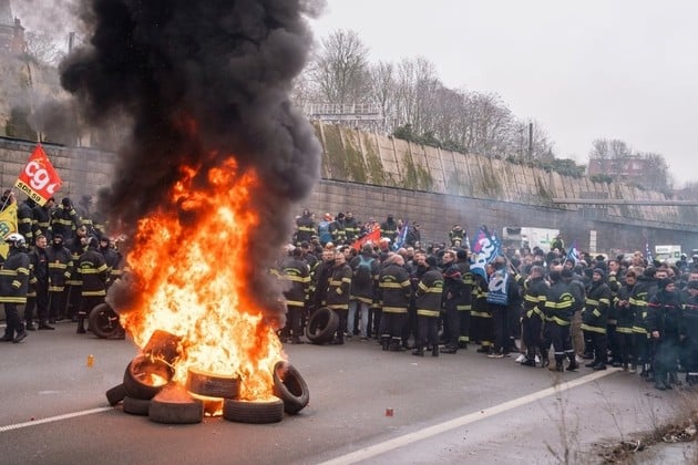 Francia: 700 bomberos protestaron en Lille por recortes y falta de personal