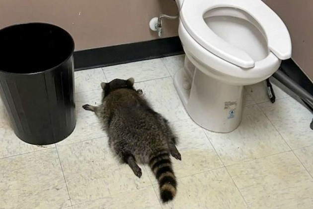 Insólito: un mapache irrumpió en una licorería, probó varias bebidas y terminó dormido en el baño