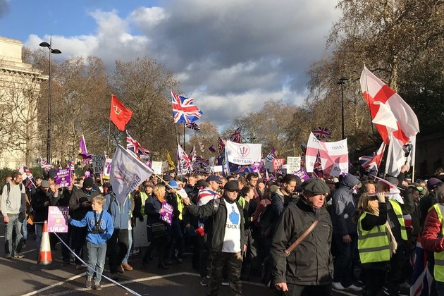 Por un lado, miles de miembros y simpatizantes del eurófobo Partido por la Independencia del Reino Unido (UKIP) convocaron una marcha bajo el título "La traición del Brexit" en la plaza del Parlamento con el activista de extrema derecha Tommy Robinson, uno de los líderes de la manifestación.