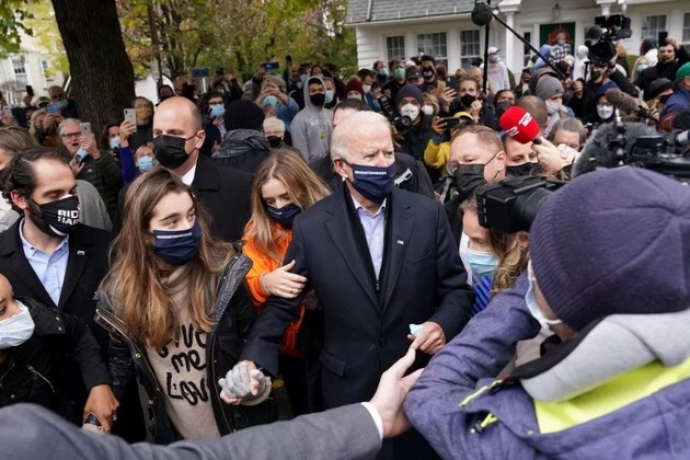 "Vamos a casa", dijo Biden, acompañado por dos de sus nietas y su esposa, Jill, al aterrizar en Scranton, para realizar uno de sus últimos gestos de campaña.