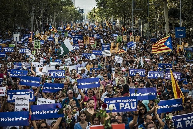 Más allá de la tensión política, la marcha fue, en palabras de la alcaldesa de Barcelona, "una manifestación de la gente". Con pancartas que rezaban "La mejor respuesta, la paz", "Soy musulmán, no soy terrorista" o "No a la islamofobia", los participantes gritaron constantemente el eslogan "No tinc por" y se repartieron cientos de rosas rojas, amarillas y blancas, los colores de la bandera de Barcelona.