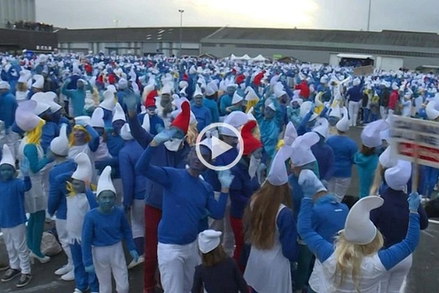 Con sus cuerpos y rostros pintados de azul, tocadas con gorros frigios blancos, unas 3.500 personas se convirtieron por unas horas en Pitufos, los célebres personajes de la historieta del belga Peyo, y bailaron, se divirtieron y también batieron el récord de la mayor concentración de estos en todo el mundo.