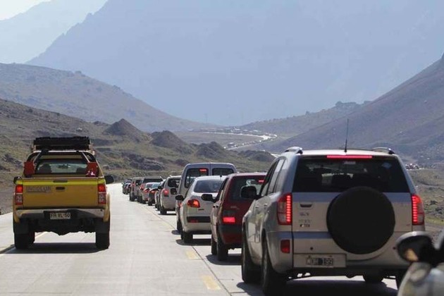 Para ello el primer corte vehicular se realiza en la localidad cordillerana de Uspallata, a unos 100 kilómetros de la capital provincial, adonde llegaron a unos 300 o 400 vehículos en el complejo fronterizo Los Libertadores, donde se realizan los trámites aduaneros para ingresar al país trasandino, detalló Munives.