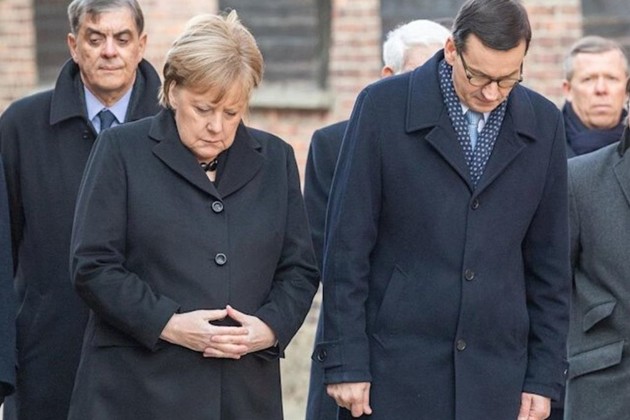 Previo a este acto, la jefa del Gobierno alemán recorrió los restos de una cámara de gas y un crematorio, acompañada por el primer ministro de Polonia, Mateusz Morawiecki, y el presidente de la Fundación Auschwitz-Birkenau, Piotr Cywinski.