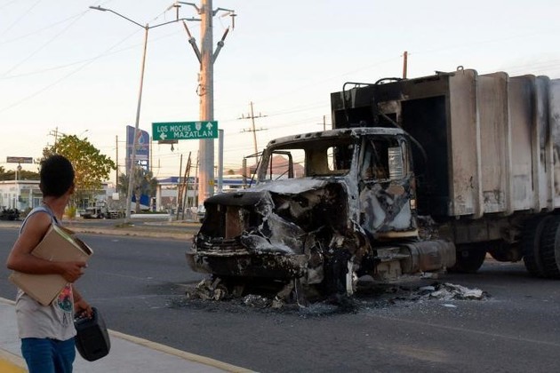 Mirá también"La cosa no es con ustedes": el mensaje que publicó Ovidio Guzmán en sus redes socialesLas fuerzas de seguridad retiraron decenas de autos robados e incendiados a lo largo de la ciudad, de 800.000 habitantes, en cuyas calles se libraron el jueves feroces batallas que alcanzaron el aeropuerto internacional y provocaron escenas de pánico entre la población.