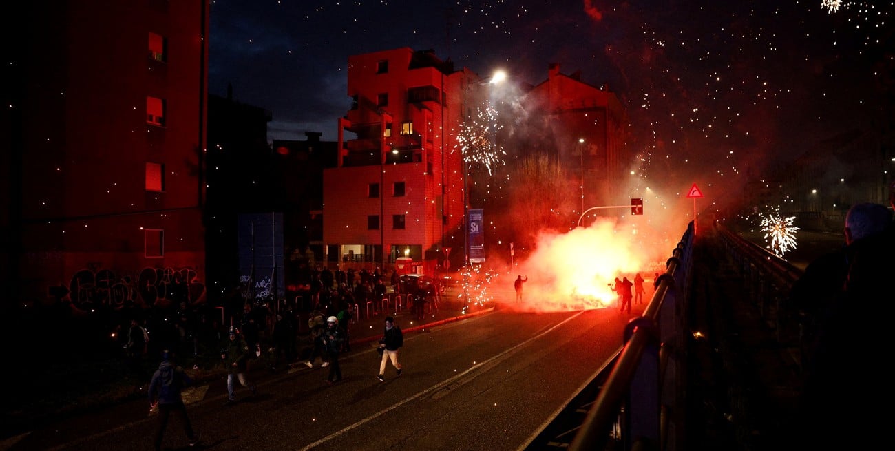 La tensión alcanzó su punto máximo cuando un grupo de manifestantes intentó bloquear los accesos al Santa Giulia Arena, una de las sedes clave del hockey sobre hielo. Fue allí donde el cordón policial intervino con equipos antidisturbios, gases lacrimógenos y camiones hidrantes para dispersar a la multitud, luego de que se registrara el lanzamiento de botellas y fuegos artificiales contra los efectivos.