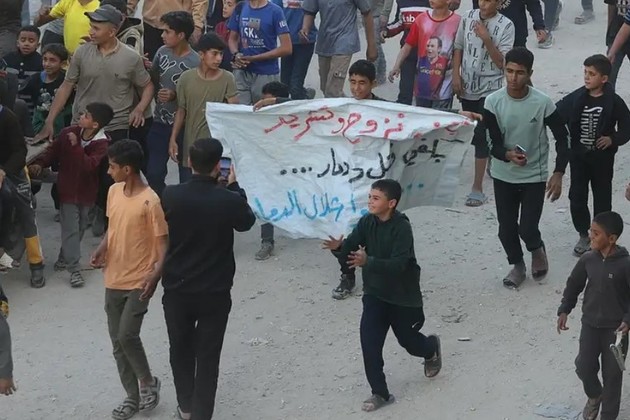 "¡Eh, Hamás, fuera! ¡Eh, Osama Hamdan, fuera! Estás en hoteles, nosotros bajo las armas", fue uno de los eslóganes sostenidos por los manifestantes, criticando a uno de los miembros del buró político del grupo islamista.
