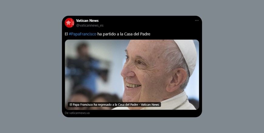 “Con profundo dolor y con la esperanza cierta de la Pascua, la Comisión Ejecutiva de la Conferencia Episcopal Argentina, en nombre de todos los obispos del país, expresamos la enorme tristeza por el fallecimiento del Santo Padre Francisco, ocurrido esta mañana del lunes de Pascua.