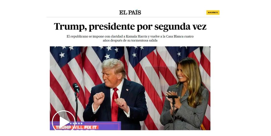 El presidente de Ucrania, Volodímir Zelenski, felicitó a Trump por su "impresionante victoria" y dijo que espera que ayude a Ucrania: "Aprecio el compromiso de Trump con el principio de 'la paz mediante la fortaleza' en asuntos internacionales. Es exactamente el principio que puede, de manera práctica, acercarnos a una paz justa en Ucrania”.