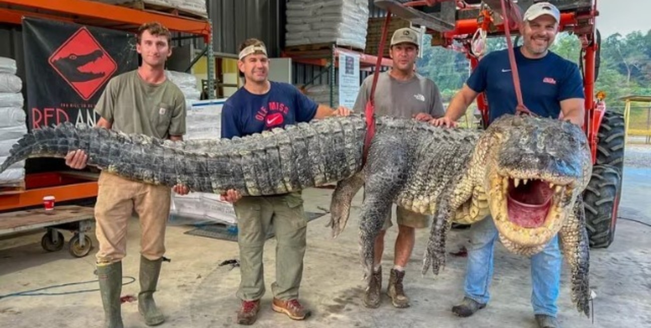 Al final, tras destruir casi todo el equipo de la embarcación, el enorme animal fue llevado a tierra a primera hora del sábado. Sus medidas dejaron atónitos a los cazadores: habían desembarcado un caimán macho que pesaba 802,5 libras (364 kilos) y medía 14 pies y 3 pulgadas de largo (4,3 metros). Su longitud batió el récord estatal del caimán más largo jamás capturado, según el Departamento de Vida Silvestre, Pesca y Parques de Misisipi.