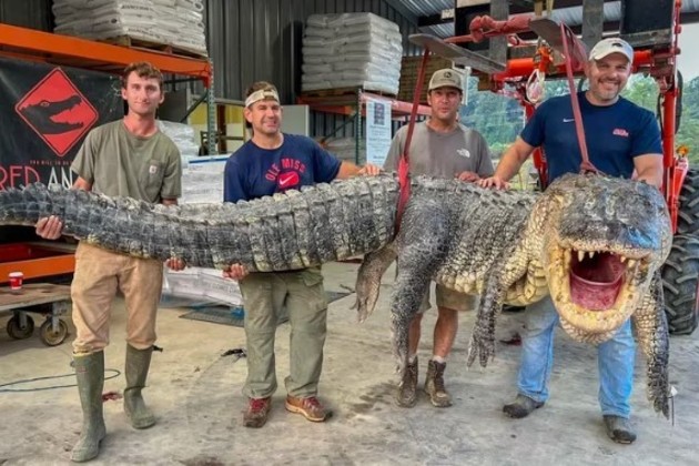 Las fotos compartidas con The Post muestran a los sonrientes cazadores -Thomas, Don Woods, Tanner White y Joey Clark- sujetando al enorme caimán con la boca abierta. Los cazadores se han ganado los elogios de Mississippi PMA, el gobernador Tate Reeves (R) y los observadores que dijeron que la vista del caimán récord era “material de pesadilla”.