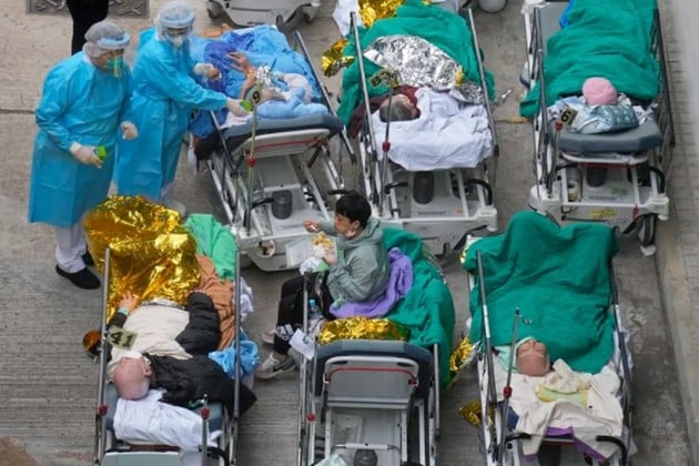 Parecen imágenes tomadas al inicio de la pandemia del Covid-19, pero no lo son. Decenas de pacientes mayores tiritan de frío a pesar de estar arropados con frazadas y mantas térmicas en camas instaladas frente al hospital de uno de los lugares más pobres de Hong Kong, en donde el sistema sanitario, casi en jaque, intenta combatir con los recursos que tiene, una nueva oleada de coronavirus, debido a la oleada de la variante ómicron.