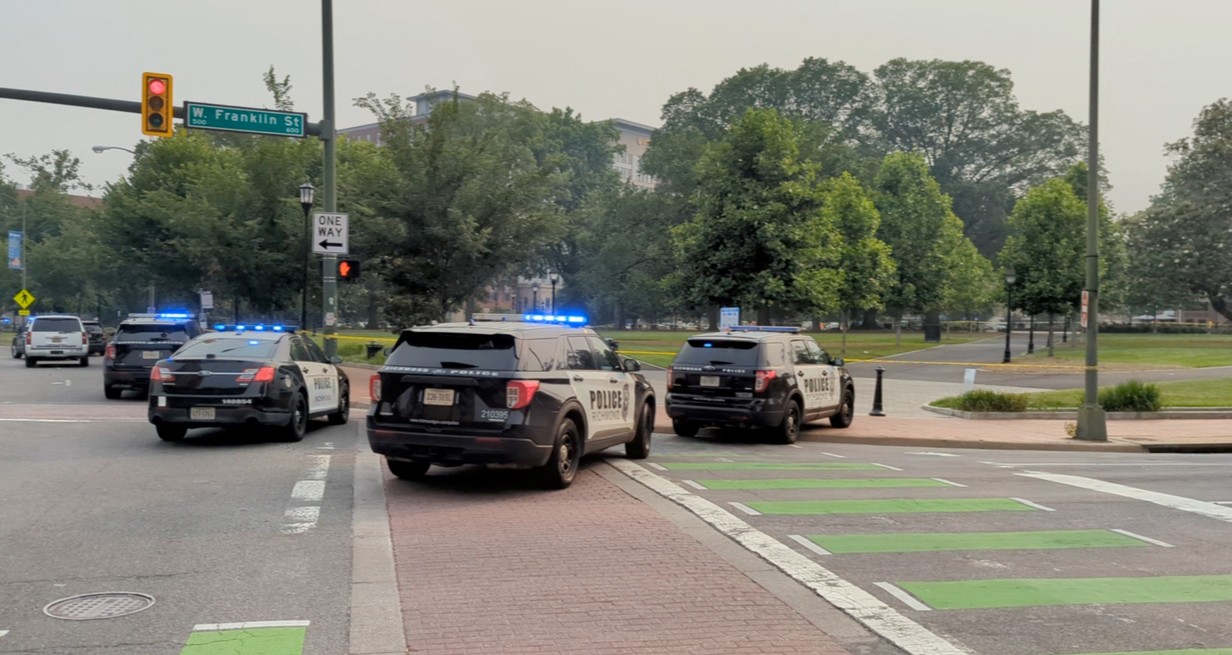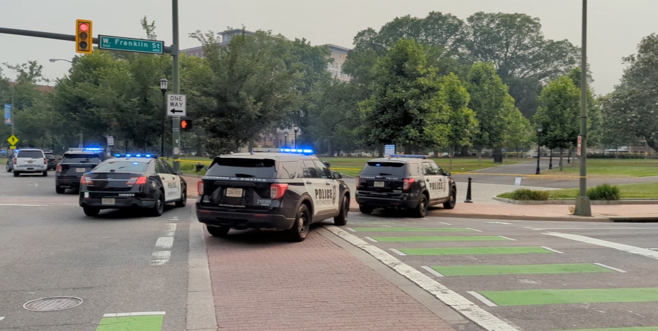 Vehículo de emergencia se abre paso después de que un hombre armado abrió fuego, según fuentes policiales, en Richmond, Virginia. Crédito: Reuters