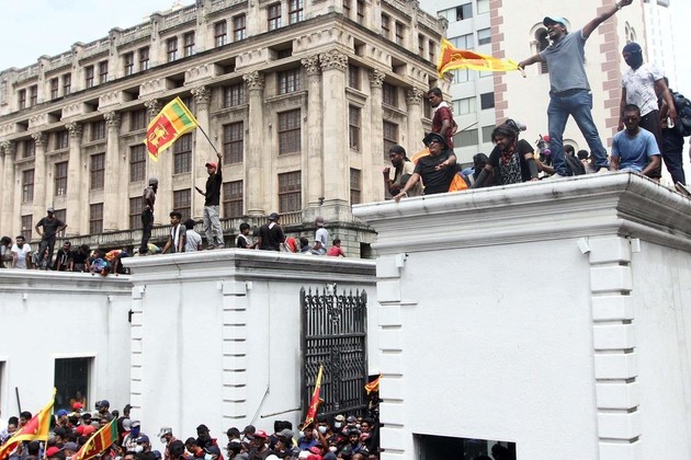 La cadena privada Sirasa TV mostró imágenes de una enorme muchedumbre irrumpiendo en el palacio presidencial en la capital Colombo, mientras que por redes sociales circulan videos de los manifestantes ya en el interior del lugar.