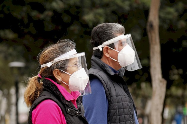 Xinhua/Mariana Bazo (200810) -- LIMA,10 agosto, 2020 (Xinhua) -- Personas portan mascarilla y careta mientras caminan cerca de un banco, durante el estado de emergencia por la enfermedad causada por el nuevo coronavirus (COVID-19), en Lima, Peru?, el 10 de agosto de 2020. De acuerdo con el recuento del lunes del Centro de Ciencia e Ingeniería de Sistemas de la Universidad Johns Hopkins, Perú ha registrado 478.024 casos confirmados, 21.072 decesos y 324.020 curados de la COVID-19. (Xinhua/Mariana Bazo) (fc) (rtg) (dp)Xinhua/Mariana Bazo (200810) -- LIMA,10 agosto, 2020 (Xinhua) -- Personas portan mascarilla y careta mientras caminan cerca de un banco, durante el estado de emergencia por la enfermedad causada por el nuevo coronavirus (COVID-19), en Lima, Peru?, el 10 de agosto de 2020. De acuerdo con el recuento del lunes del Centro de Ciencia e Ingeniería de Sistemas de la Universidad Johns Hopkins, Perú ha registrado 478.024 casos confirmados, 21.072 decesos y 324.020 curados de la COVID-19. (Xinhua/Mariana Bazo) (fc) (rtg) (dp)