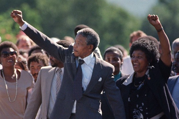La imagen de Winnie Mandela de la mano de su esposo Nelson mientras el líder negro sudafricano salía de la cárcel en 1990 se convirtió en uno de los más reconocidos símbolos de la lucha contra el apartheid, recordó el Mail & Guardian.