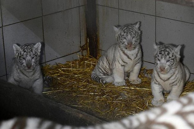 El antecedente más conocido de trillizos de tigre blanco conocido en un zoológico europeo corresponde al nacimiento el pasado mes de junio en Kernhof (Austria) de los cachorros conocidos como Héctor Pascha y Zeus. En este caso, la intervención humana en un parque zoológico se ha llevado al extremo -hasta cierto punto criticable por motivos éticos- porque las actividades del Kameltheater Kernhof und Weißer Zoo (literalmente parque teatro de camellos de Kernhof y Zoo Blanco) se centran en la exhibición comercial de animales y la cría endogámica de especies como los tigres blancos (para conseguir nuevos ejemplares de esta variedad de escasa coloración).