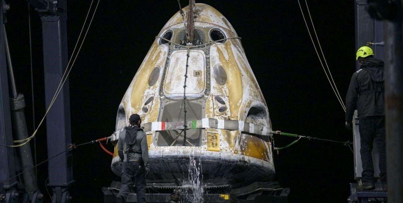 El regreso se produjo de forma segura cuando la cápsula Dragon de la compañía SpaceX, encargada de transportar a la tripulación, se desacopló de la Estación y realizó un viaje de retorno de casi 11 horas para amerizar en el océano frente a la costa de San Diego, California.