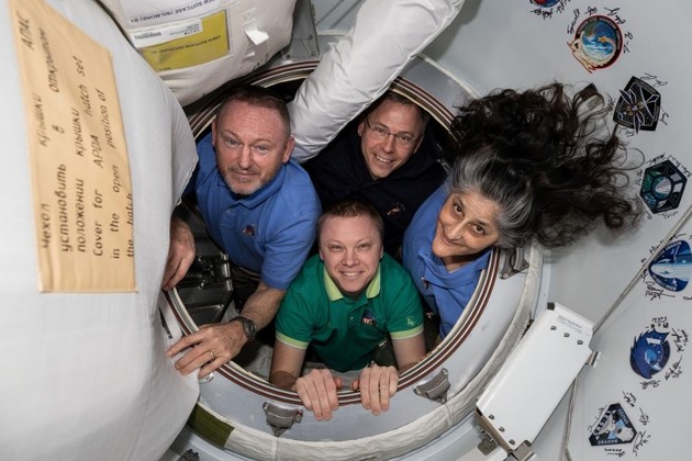 Los miembros de la Tripulación-9; Nick Hague, Sunita "Suni" Williams, Butch Wilmore y Aleksandr Gorbunov, estaban esperando el arribo de sus nuevos compañeros a la estación espacial.