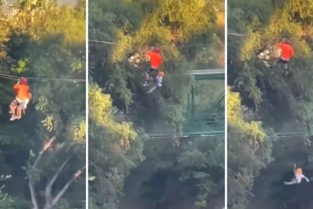En un video puede verse como el pequeño César avanza por la tirolesa, hasta que desde atrás llega un instructor. En medio del recorrido, ambos se detienen y es entonces cuando el nene cae debido a que la banda de seguridad del arnés no aguantó el peso y se rompió.