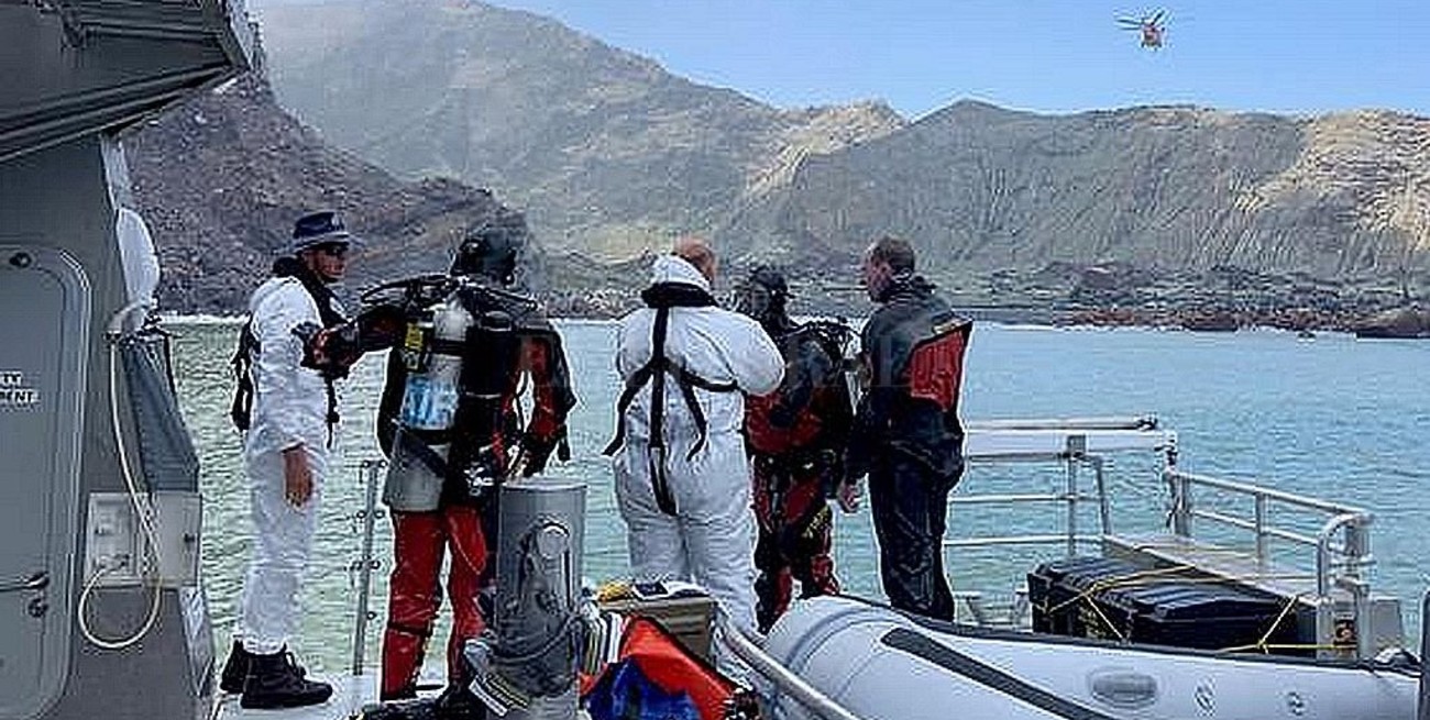 Equipos de submarinistas buscaban el sábado (14.12.2019) los cuerpos de al menos dos víctimas de la erupción del volcán de White Island que entró en erupción el lunes y mató al menos a 16 personas.