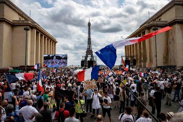 París acoge nuevas manifestaciones en contra de las restricciones por coronavirus y la vacunación obligatoria, unos días después de que las autoridades francesas implementaran un nuevo pase de salud COVID-19 en medio de la creciente ola de contagio.