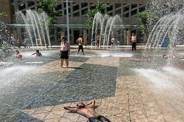 Las autoridades canadienses han habilitado centros donde la población puede ir a refrescarse, como este de Vancouver