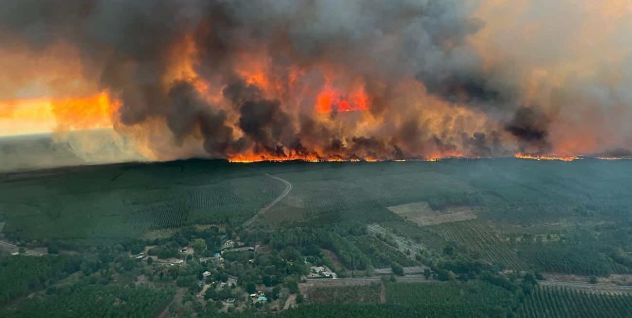 Vista general del humo y las llamas del incendio en Belin-Beliet, mientras los incendios forestales continúan propagándose en la región de Gironda, en el suroeste de Francia. Crédito: Reuters