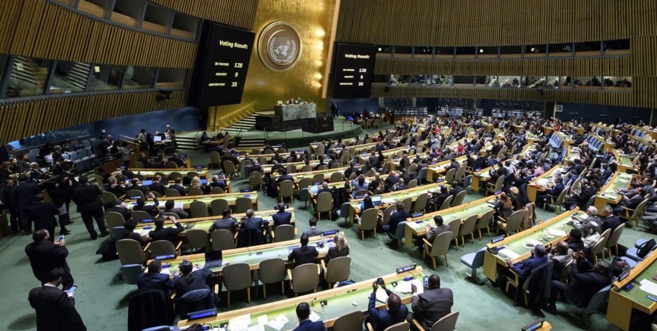 La decisión de la ONU fue respaldada por 128 votos frente a nueve en contra y 35 abstenciones. Argentina se abstuvo, a pesar que en 2010 el país reconoció al Estado de Palestina “dentro de las fronteras definidas en 1967", lo que significa en los territorios de Cisjordania, la Franja de Gaza y la parte oriental de Jerusalén.