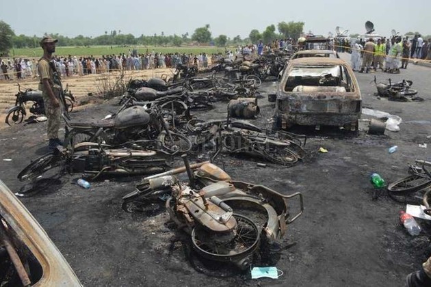 El camión iba a gran velocidad y volcó a primera hora de la mañana en una ruta nacional cerca de la ciudad de Bahawalpur y cuando los residentes se acercaron para recoger el combustible que se derramaba, hubo una explosión que arrasó con ellos.