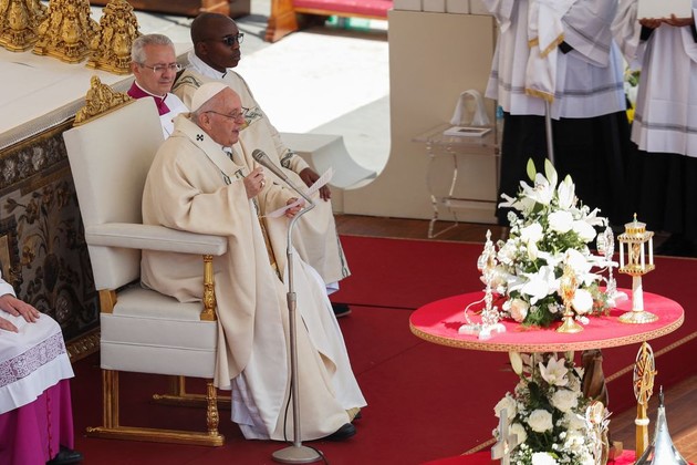 Francisco finalmente, y a pesar de los fuertes dolores de rodilla que le impiden caminar y permanecer mucho tiempo en pie, pudo oficiar la ceremonia, aunque pronunció su homilía sentado y así permaneció durante toda la liturgia.