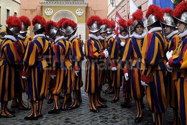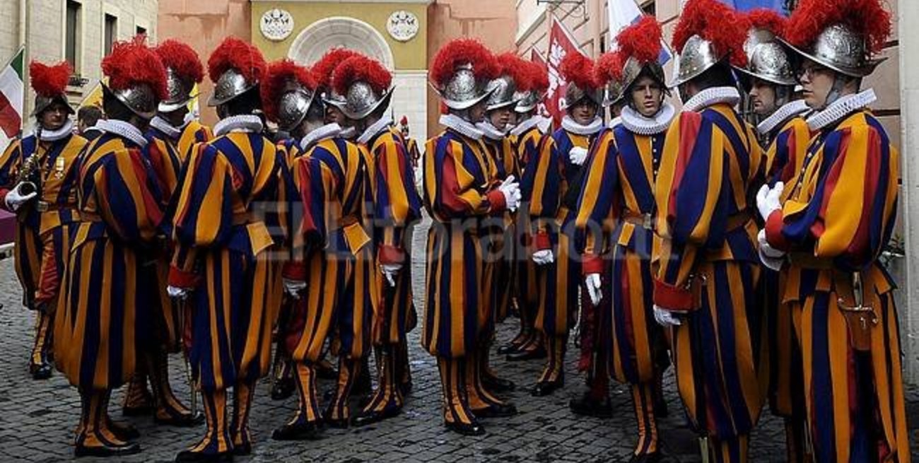 De la Guardia Suiza, conocida por sus coloridos uniformes en azul, rojo y amarillo, es la responsable de la seguridad del papa desde 1506. Para entrar a formar parte del cuerpo se precisa ser soltero, católico, tener entre 19 y 30 años, así como tener una moral intachable.